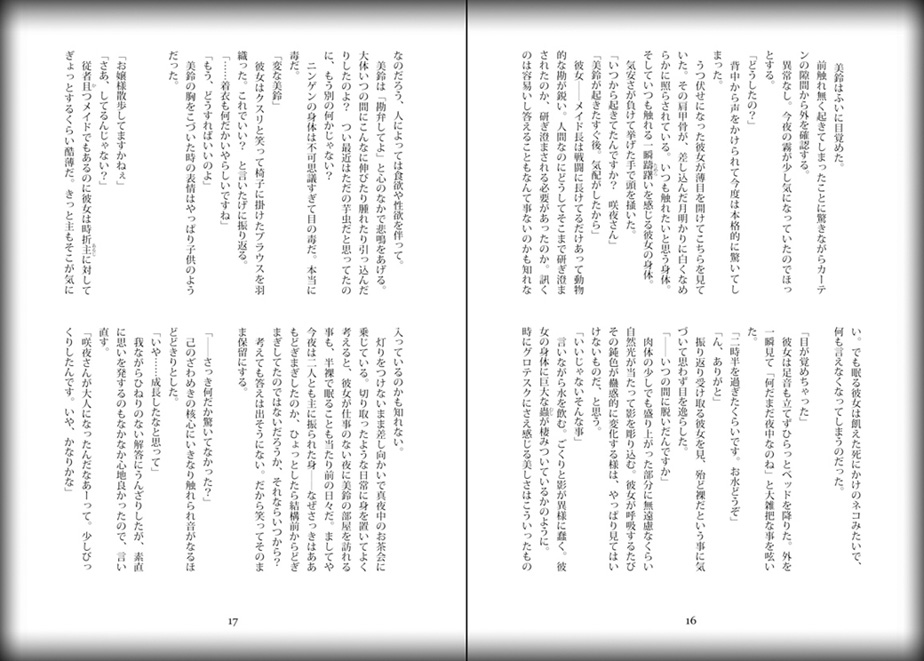 さて次回ですが、サークルとしての活動は少し時間をおいてイベントは未定としております。その時間に少しでも長くおもしろい話を練るつもりです。元々登場人物の少ない狭い物語ばかりでしたので。