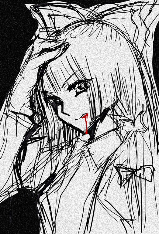 頭の中の基本色が暗いので甘い色使いが難しかったです。覚醒は血多めなので